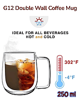 G12 Double Wall Glass Mug, 250 ml
